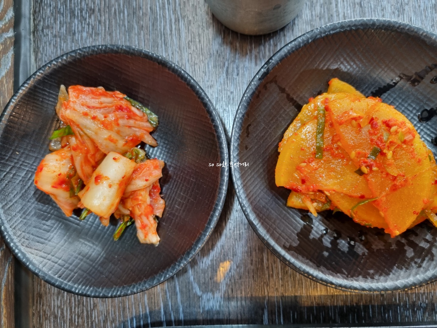 난 셀프대에서 배추김치와 단무지를 가져 왔다. 배추김치도 맛있었고 단무지 양념은 식감도 좋았고 양념도 내 입맛에 맞았다.