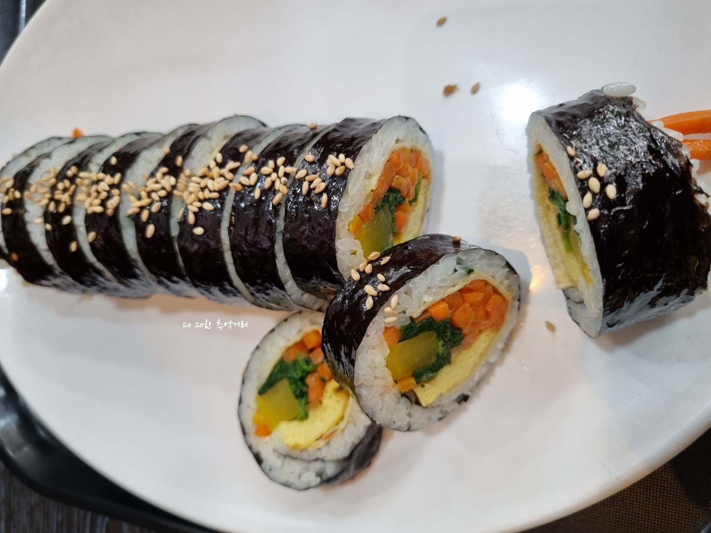 김밥도 집에서 직접 만들어서 먹은 맛이다. 깔끔하고 전체적으로 간도 잘 맞고 맛있었다.