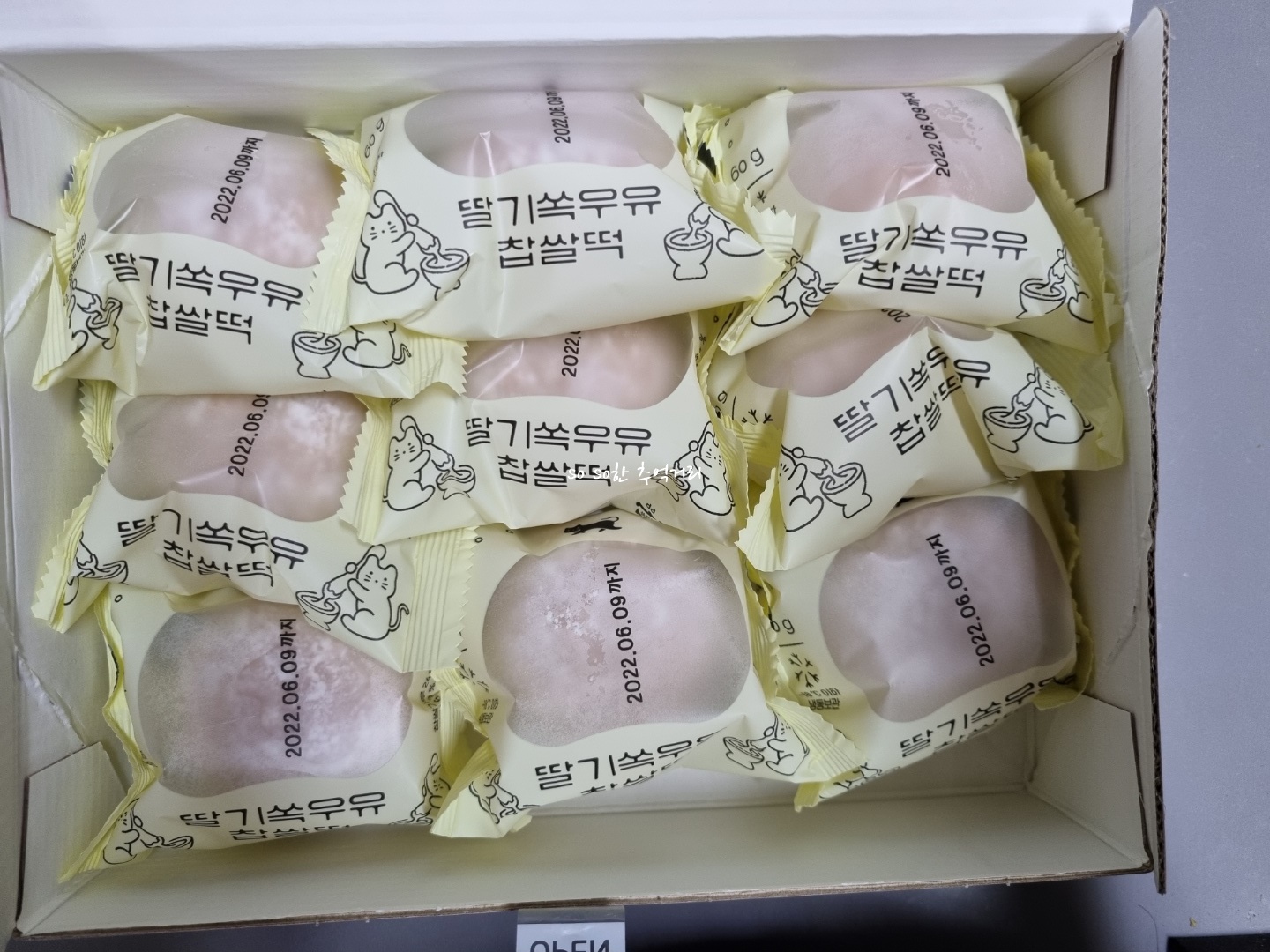 수능선물 추천 쿠캣마켓 딸기쏙우유찹쌀떡도 9개가 들어있다. 색도 예쁘고 참 맛있게 생겼다.