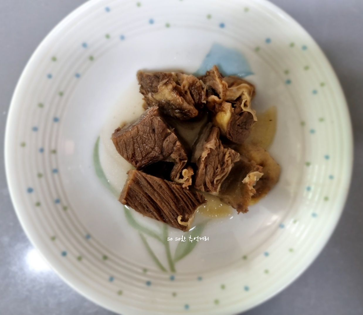 이정도면 가성비 좋다. 요즈음 갈비탕 한그릇에 14,000원 정도 하닌까 가끔은 이렇게 온라인 주문으로 갈비탕 냉동고에 쌓아놓고 먹는 것도 좋은 것 같다. 당분간 아이들 끼니 걱정은 조금 덜었다. 뼈가 없으닌까 어린 자녀들이 먹기에 고기 발라주지 않고 잘라주기면 하면 되서 더 편하겠다.