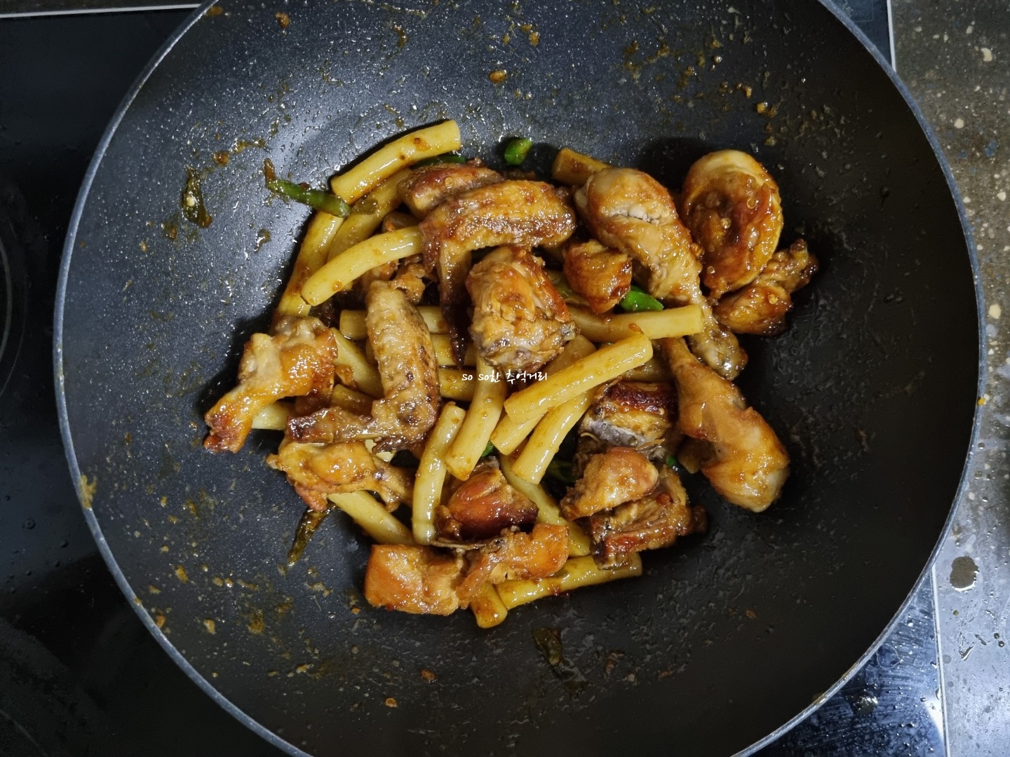 " 이 남자의 COOK" 님은 닭볶음용닭을 1KG로 했는데 나는 닭을 600g으로 하는 대신 떡볶이떡을 넣었기 때문에 양념소스의 간이 잘 맞았다.