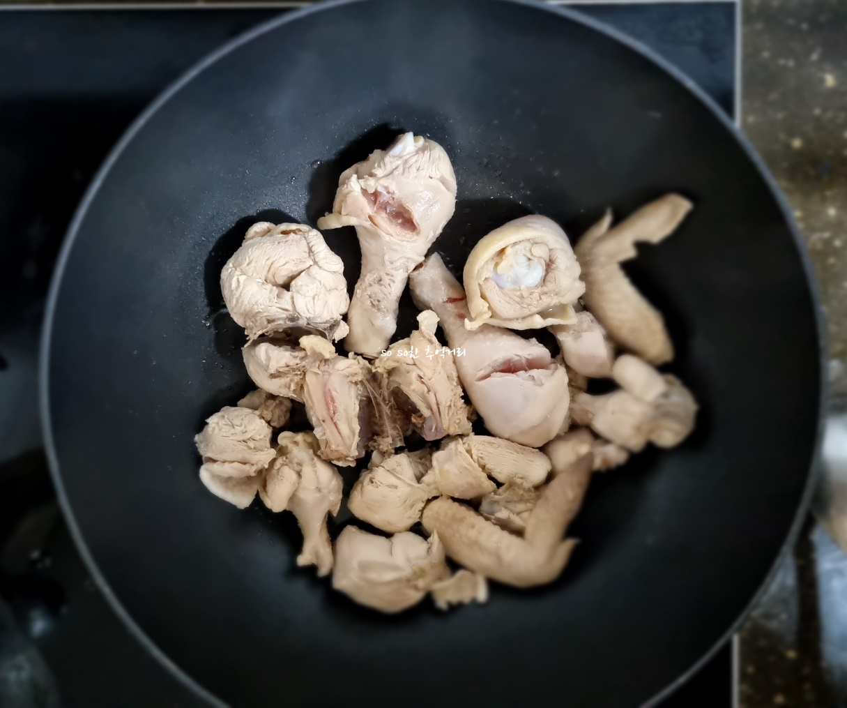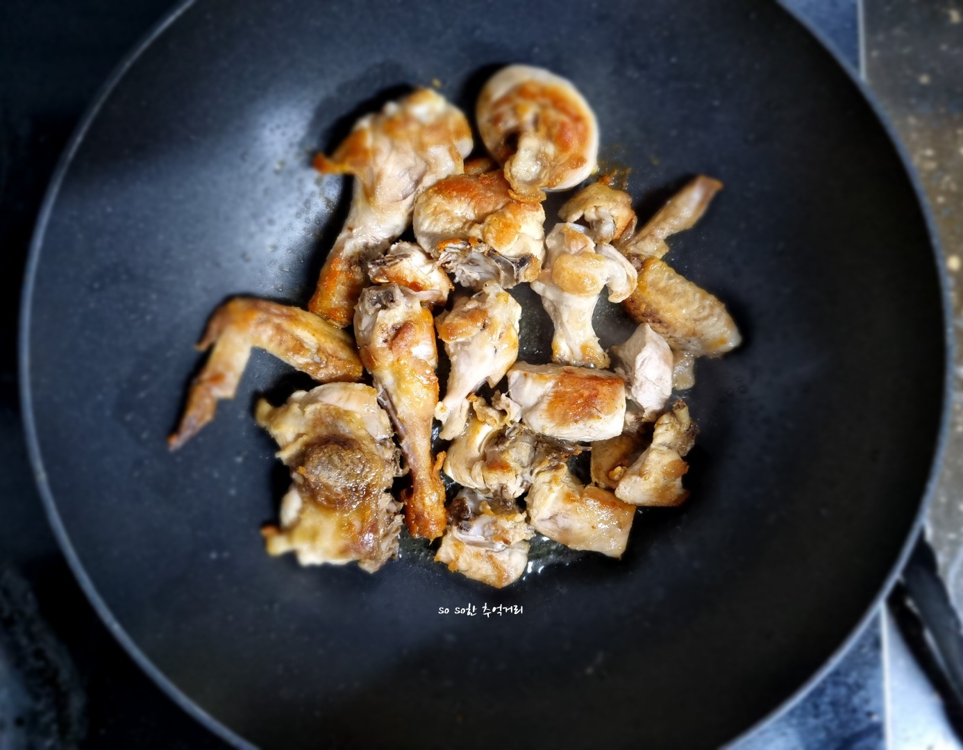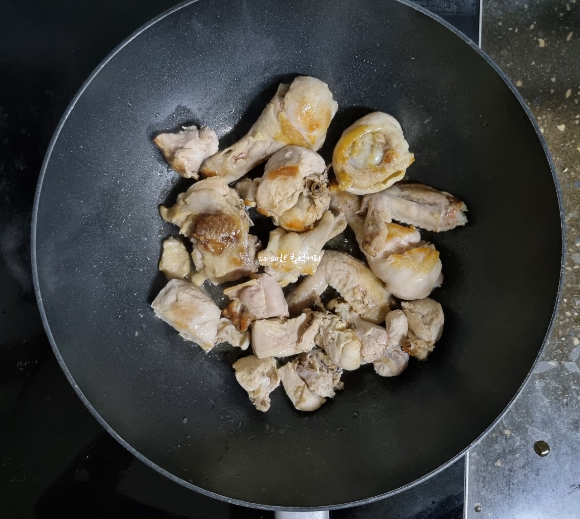 2. 참기름 2스푼을 두른후 닭을 구워준다. 참기름을 넣으면 닭의 잡냄새를 없애준다고 한다.