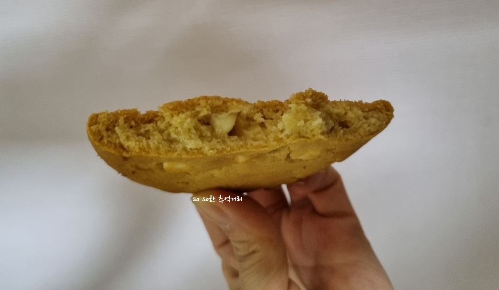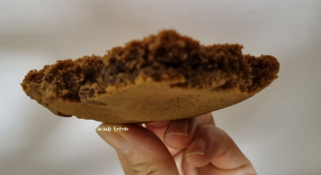 안에는 초코가 가득 차 있다. 맛은 많이 달지 않고 괜찮은데 짠맛도 느껴진다. 근데 딸은 텁텁한 맛이 난다고 한다. 내 생각에는 아메리카노랑 먹으면 딱 맞다.