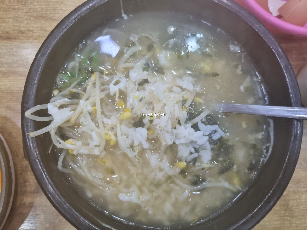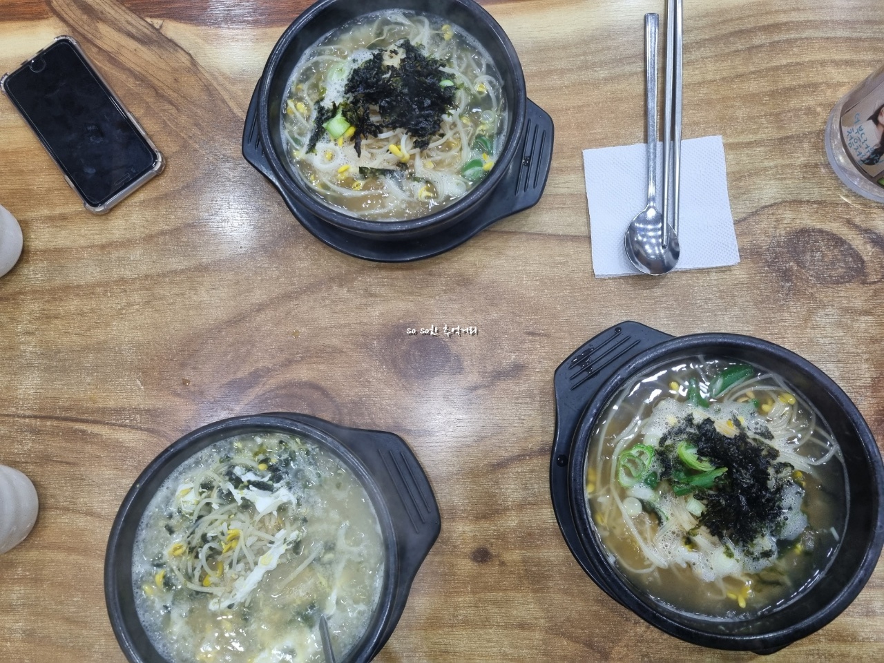 드디어 콩나물국밥 3개 나왔다. 저번에도 느꼈지만 음식이 빨리 나와서 좋다.
