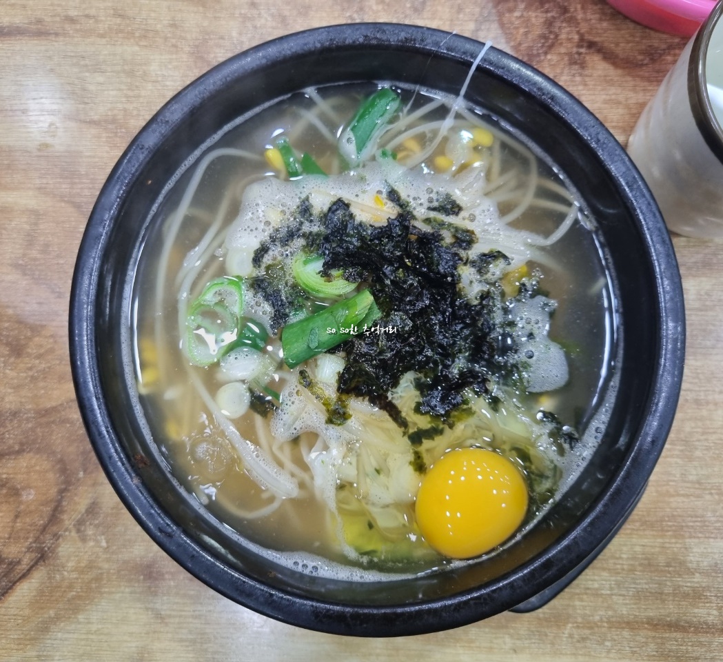 콩나물국밥에 먼저 생달걀을 넣었다. 아마도 달걀값 인상으로 음식값이 오른 것 같다.