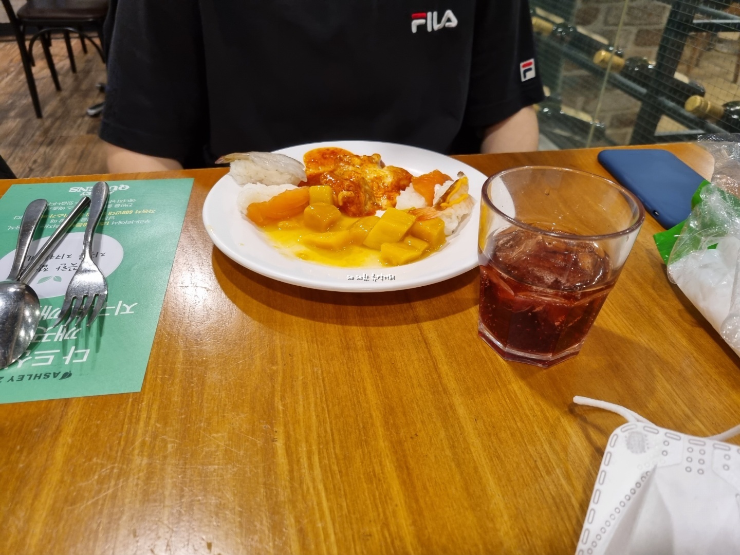 들어가는 입구에 QR체크하고 3명이 앉을자리를 잡아주었다.
