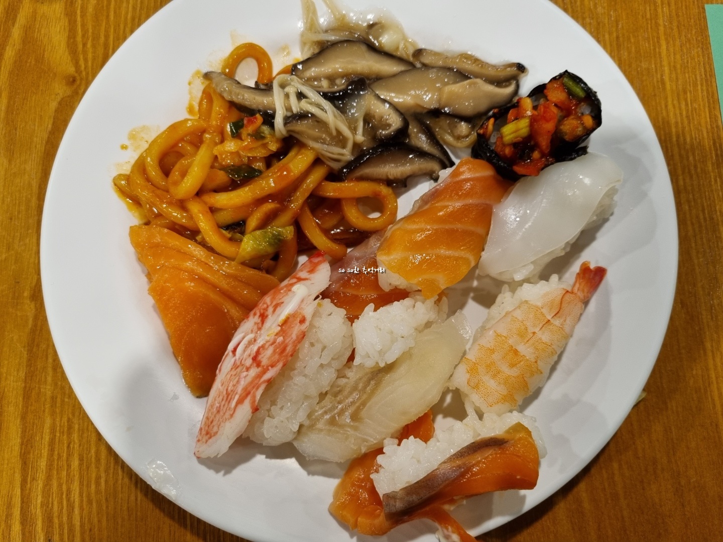 난 초밥 위주로 가져왔다. 매번 느끼지만 애슐리 가면 많이 못 먹는다. 이날 마무리는 곤드레밥을 조금 비벼 먹었더니 그나마 속이 좀 편했다. 다른 사진은 먹느라 찍지 못했다.