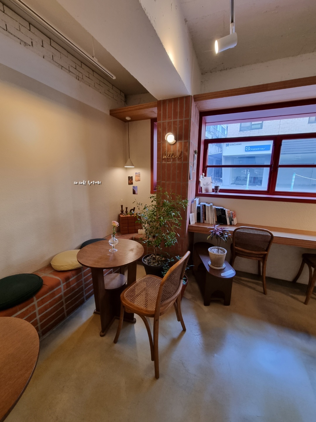 의자도 신기했다. 벽돌로 쌓아서 의자를 만들고 방석을 두었는데 생각보다 편했다. 개인적으로 이런 분위기 카페를 좋아하는데 완전히 내 취향저격이었다. 요즈음에는 프랜차이즈 카페가 많다보니 인테리어가 거의 비슷하다. 그런데 개인카페는 직접 사장님들의 취향을 그대로 반영해서인지 분위기가 색달랐다.