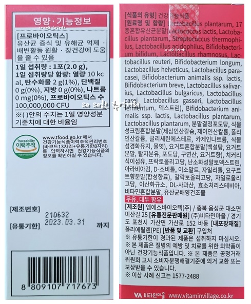 여성 질유래 유산균 추천 비타민마을 더블유 프로바이오틱스는 3종 특허를 획득한 질유래 유산균 락토바실러스 플란타룸 LB931 균주가 들어있다. 세계, 미국, 유럽에서 특허을 받은 균주로서 건강한 여성의질 세포에서 분리한 균주, 유럽 EFSAQPS 등재된 안전한 균주, 국내 뿐만아니라 국제적으로 사용되고 있는 균주라고 한다. 그리고 국내 특허균주 ATG-K8 이라는 유산균을 배합하여 장 건강 케어에 좋은 균주가 들어 있다.