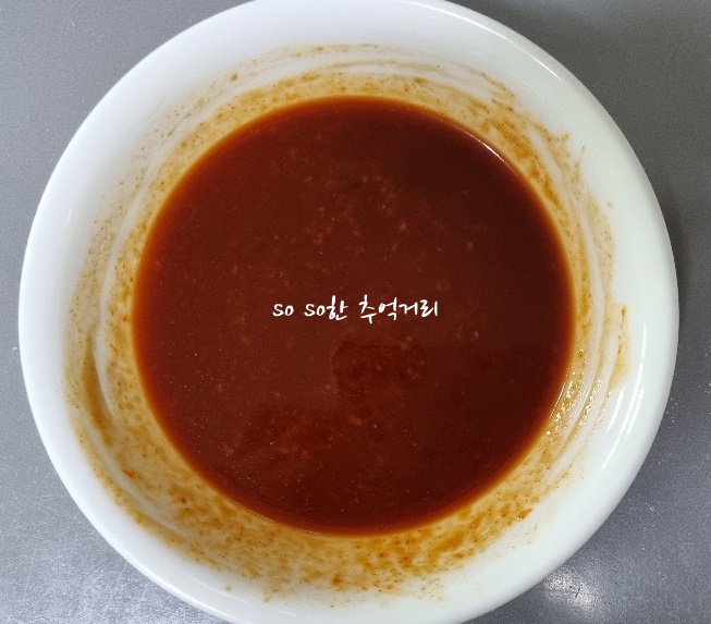 양념소소는 설탕2스푼, 간장2스푼, 마늘1스푼, 케첩2스푼, 올리고당4스푼, 고추장2스푼, 물6스푼을 잘 섞어준다.