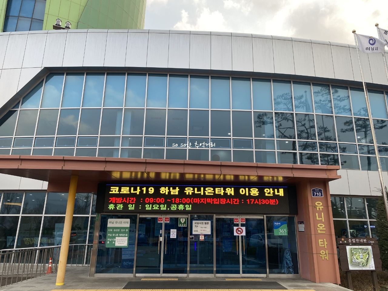 하남 가볼만한 곳 하남 유니온 타워는 코로나 19로 인해서 개방시간이 바뀌었다. 하남 유니온타워 개방시간은 오전 9시 ~ 오후 6시까지 이고 마지막 입장시간은 오후 5시 30분이다. 휴관일은 일요일이나 공휴일이니 참고하면 되겠다. 하남 유니온 타워 입장료는 무료이다.
