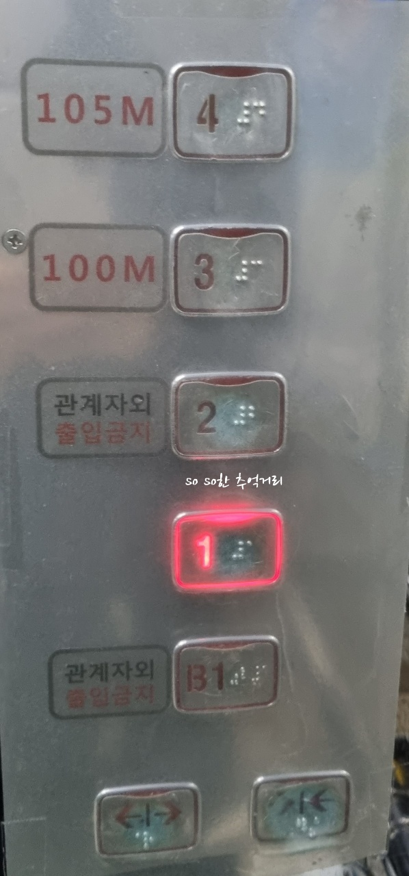 엘리베이터를 타고 먼저 가장 높은 곳 4층으로 올라갔다. 4층은 105M 이다. 엘리베이터를 타고 한참 올라간듯 하다.