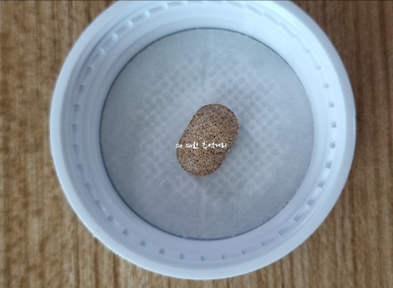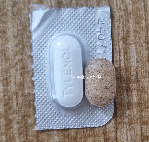 사진으로는 쉽게 크기가 구분이 안되어서 집에 있는 타이레놀 크기와 비교를 해 봤다. 길이는 타이레놀 반 정도 크기이다. 굵기는 타이레놀보다 조금 더 넓다. 이 정도면 먹기에 부담이 없는 크기다.