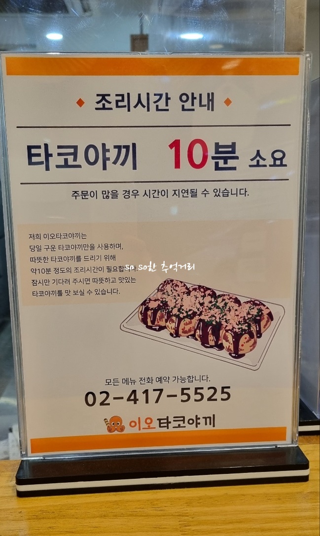 진짜 오랜만에 블로그에 글을 올린다.... 어제는 아들 안경때문에 송파에 나갔는데 우연하게 발견한 송파 타코야끼 이오 타코야끼 송파점이 있다. 언제 생긴지는 모르겠지만 워낙 오랜만에 갔던 곳이라.. 나름 반가웠다. 보통 타코야끼는 조그마한 트럭에서 사먹었는데 이렇게 가게가 있다니 냄새에 이끌려 들어갔다.