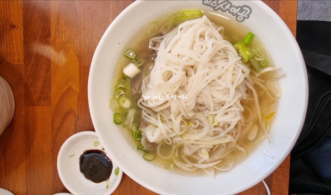 안을 뒤집어 보았더니 국수와 숙주도 넉넉하다. 베트남 쌀국수는 역시 국물맛이 아닌가 싶은데... 다행히 국물도 개운하고 깔끔한 맛이 났다. 언젠가 먹었던 베트남 쌀국수는 텁텁한 국물맛이 나서 조금 아쉬웠는데 미스사이공 하남감일점은 국물맛은 입맛에 딱 맞았다. 신랑이랑 먹으면서 가성비 맛집이다. 이정도 가격에 이 맛이면 괜찮다고 평가했다.