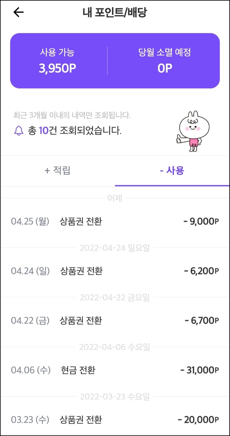 1월 26일부터 시작한 포인트를 모두 합산 했더니 약 10만원 가까이 된다. 가입한분이 80분이고 워너아이 이벤트에서 몇명 가입하면 만원 포인트를 주어서 나름 포인트가 쏠쏠한 용돈벌이가 되었다. 포인트로 보통 모바일 상품권으로 교환해서 아이들 간식을 사주었거나 신랑이랑 커피 데이트 하는데 썼다.