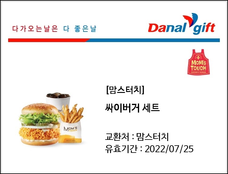 딸은 버거킹, 아들은 맘스터치를 원해서 워너아이포인트로 모바일 상품권으로 교환후 아이들에게 다시 문자로 보내주었다...