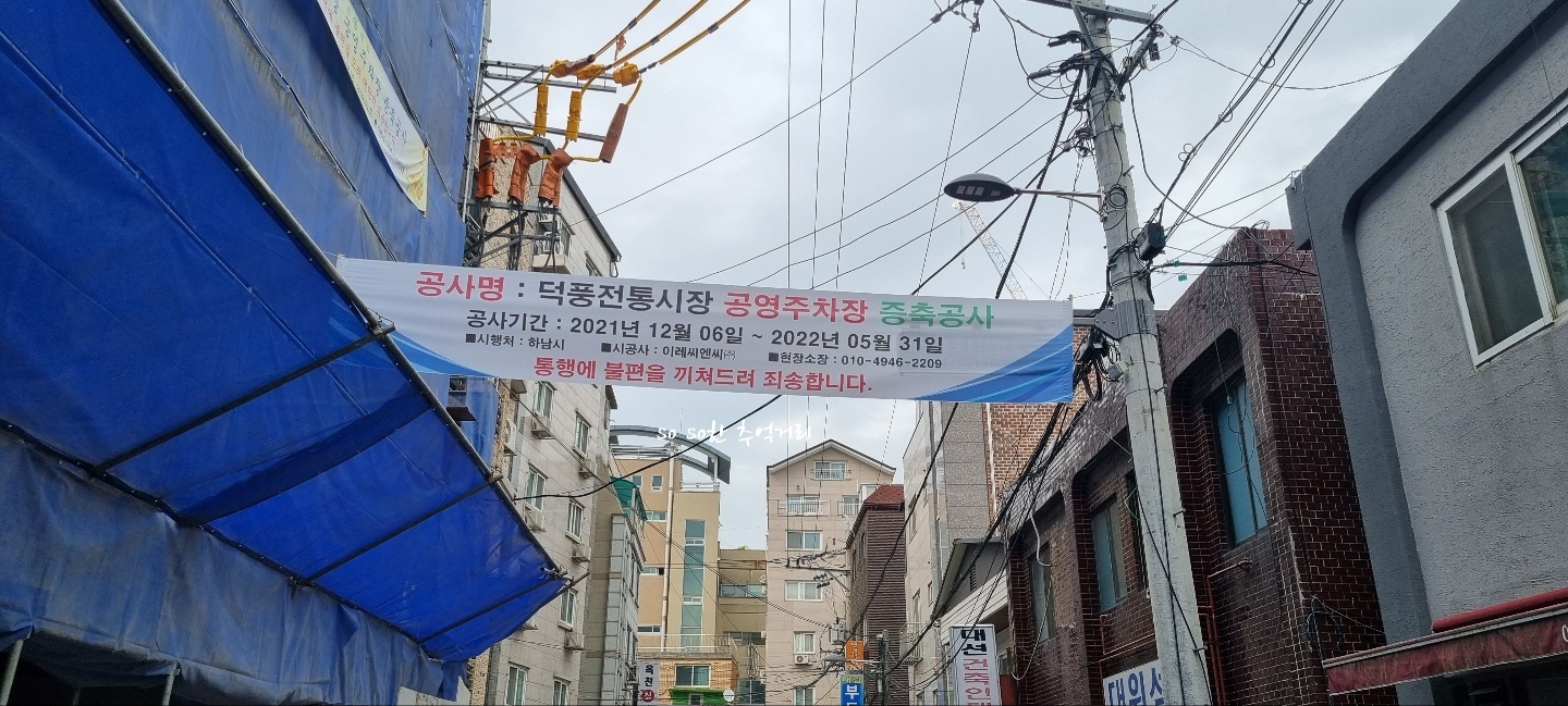 하남 덕풍전통시장에는 공영주차장이 있다. 하지만 2021년 12얼 6일 부터 2022년 5월 31일까지 공영주차장 증축공사를 하는중이었다.