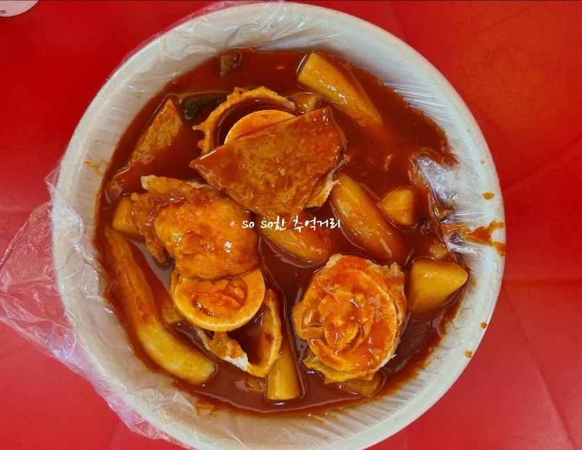 먼저 오뎅을 먹고 떡볶이랑 달걀튀김을 가지고 자리로 왔다. 편스토랑에서는 달걀이 반숙이 었는데 아쉽게 반숙은 아니었다. ㅎㅎ.. 떡은 쌀떡과 밀떡이 섞여있었다. 떡은 쫄깃쫄깃하고 맛이 좋았다. 하지만 양념은 내가 먹어보지 못한 맛이라 할까 입맛이 달라서 일까 아주 입에 딱 맞는 맛은 아닌것 같았다. 사람마다 입맛 차이겠지만.... 짧은시간에 그래도 신랑이랑 맛있게 먹었다.