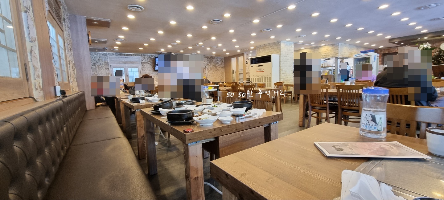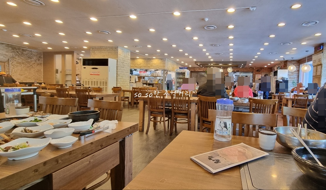 우리가 도착한 시간이 2시 35분쯤 된 것 같은데... 점심시간이 한참 지났는데도 안에 사람들이 정말 많았다. 첨 들어갔을때는 워낙 사람이 많아 사진 찍기가 그래서 다 먹고 그나마 사람들이 빠진후에 사진을 찍었다. 아마 이 근처가 등산로가 있어서인지 등산하시고 오시는 분들도 많았다. 3시가 넘어서도 꾸준히 손님들이 들어왔다.