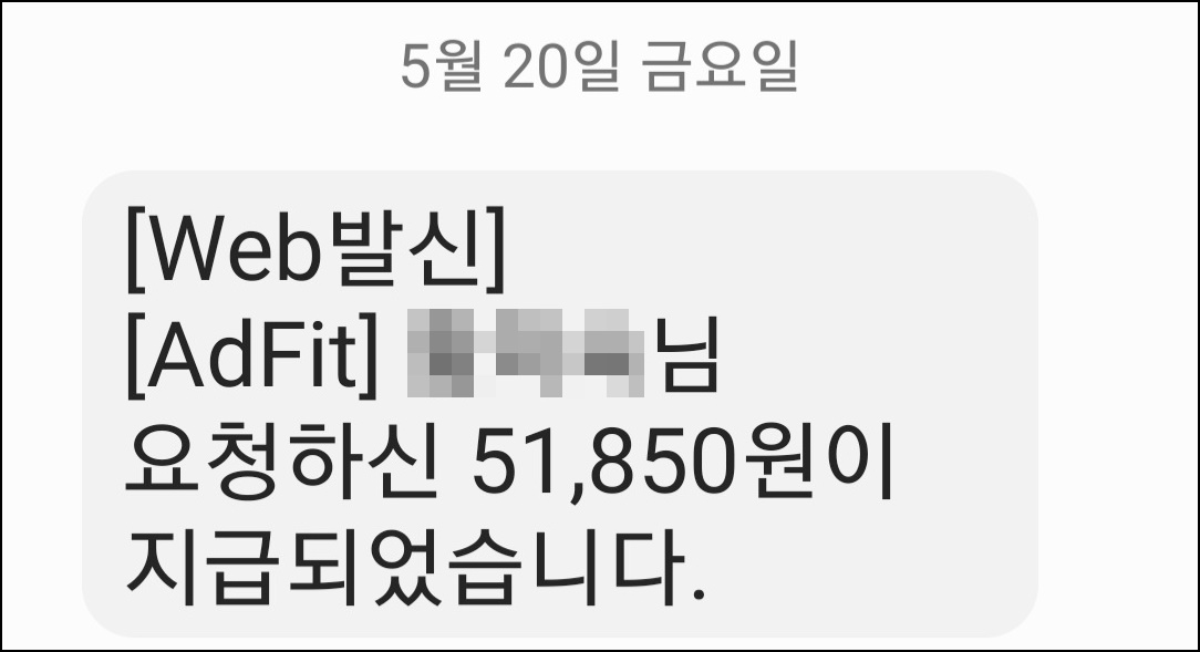 드디어 카카오애드핏 수익이 입금되었다. 4월에 5만원이 넘길래 신청을 했는데 5월20일에 입금이 되었다. 티스토리 블로그 시작한지 8개월만에 카카오애드핏 수익을 신청한셈이다. 카카오애드핏은 5만원 이상이 되어야 수익금을 신청할 수 있다. 참으로 오래 걸렸다..