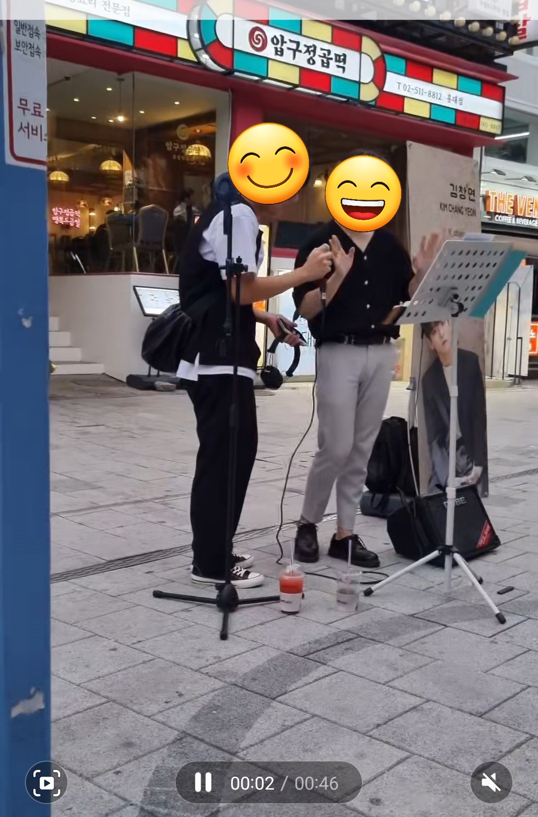 버스킹하시는분은 가수라고 한다. 신청곡을 받길래 아들은 폴킴의 초록빛을 신청했는데 가수분이 잘 모르는 노래 여서 아들보고 나와서 부르라고 손짓을 계속 했다고 한다 .