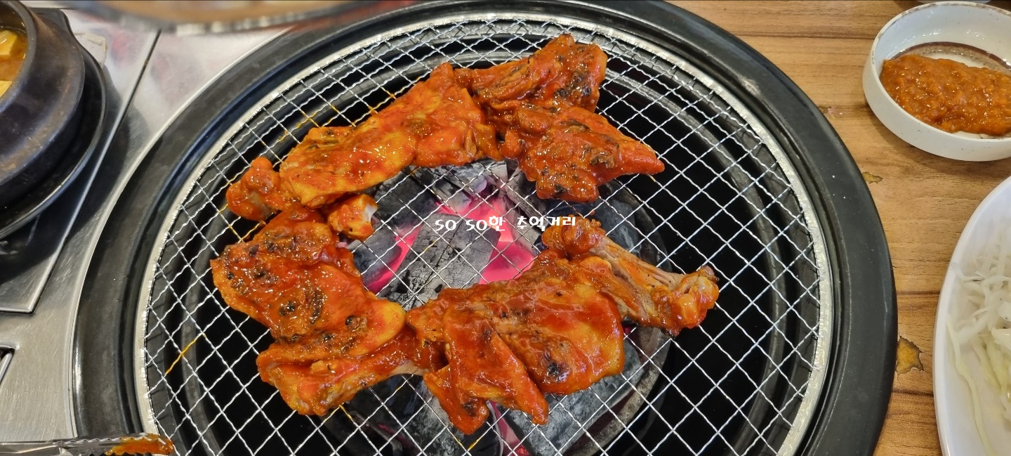 강북구 수유리 가성비 맛집 진비 숯불닭갈비는 닭의 엉덩이부위만 쓰신다고 한다. 그래서인지 살이 퍽퍽하지 않고 맛있었다. 맛도 보통맛이라 그리 맵지 않고 먹기에 좋았다.