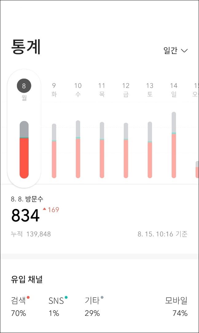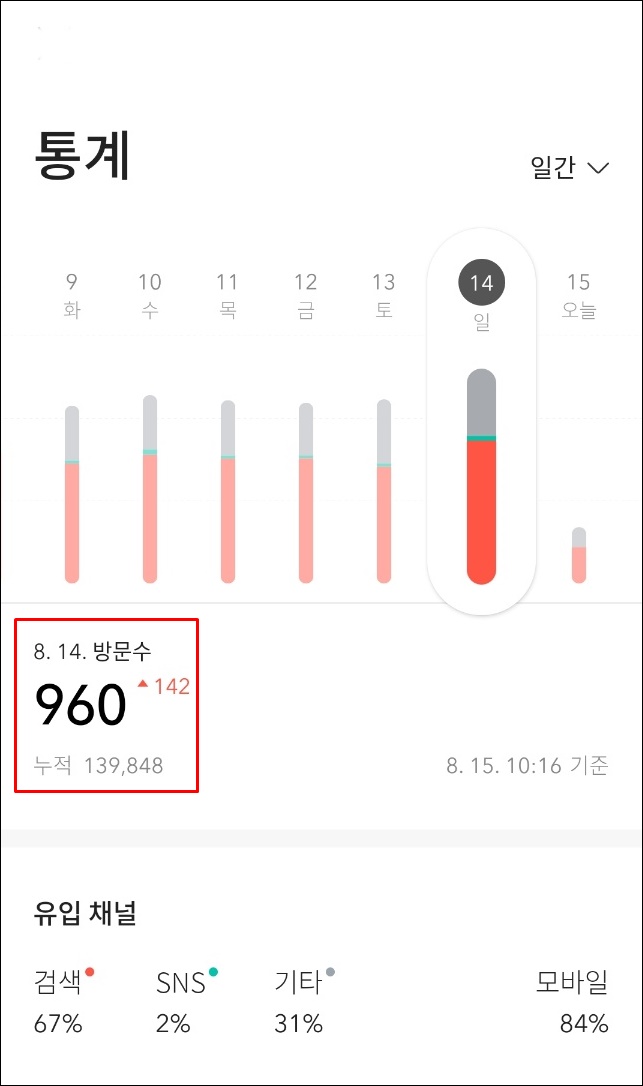 저번주는 티스토리 블로그 방문자수가 800명대를 넘었는데 드디어 어제는 티스토리 블로그 방문자수가 960명을 달성했다.