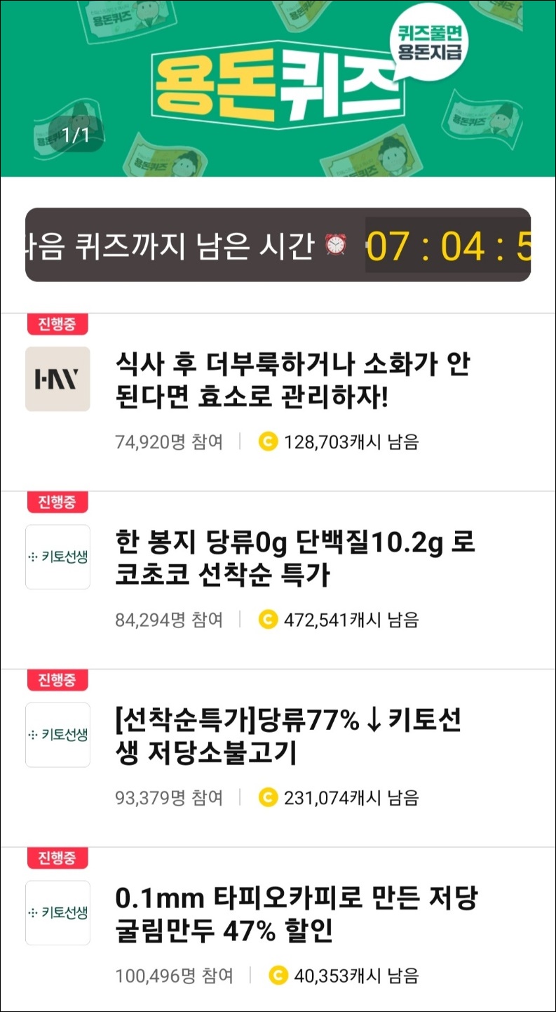 캐시워크와 같이 용돈퀴즈를 맞히면 캐시가 쌓인다.