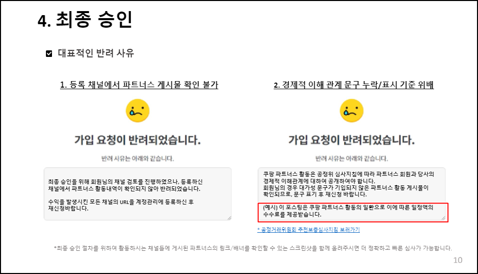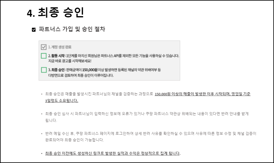 그렇다고 최총승인이 다 되는게 아니다. 때로는 쿠팡파트너스 최종승인이 반려 될 수 도 있으니 위에 내용을 잘 참고하길 바란다.