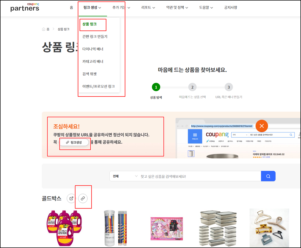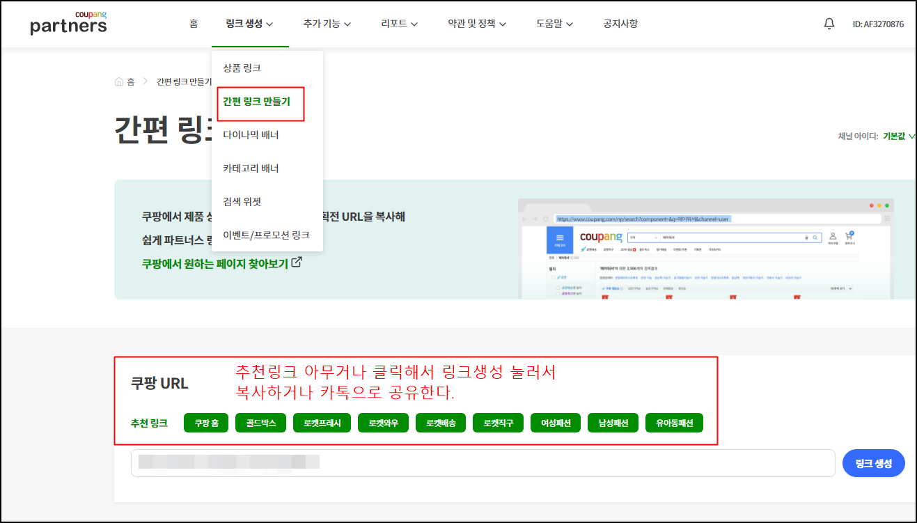 활동을 하는데는 제품의 링크를 생성하거나 쿠팡 로켓배송이나 쿠팡홈 등 링크를 생성해서 지인들에게 마구 마구 뿌린다.