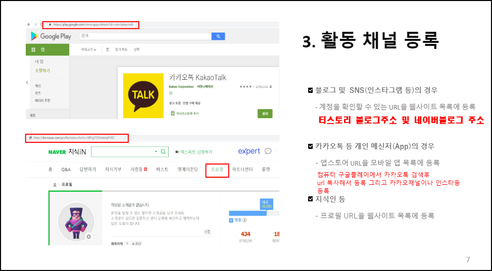 그리고 본인이 활동할 곳을 등록하면 된다. 블로그나 sns 주소를 넣으면 된다.