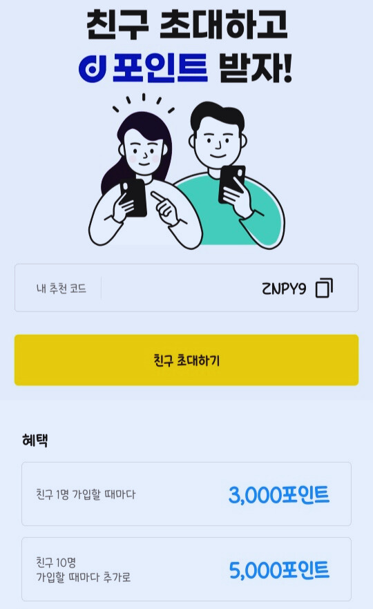돈버는앱 어플 추천 캐시닥 추천인 코드 ZNPY9 친구1명 가입시 3000캐시 친구10 명 가입시에는 5000캐시가 추가 적립된다. 대신 친구초대는 최대 100 명이디.
