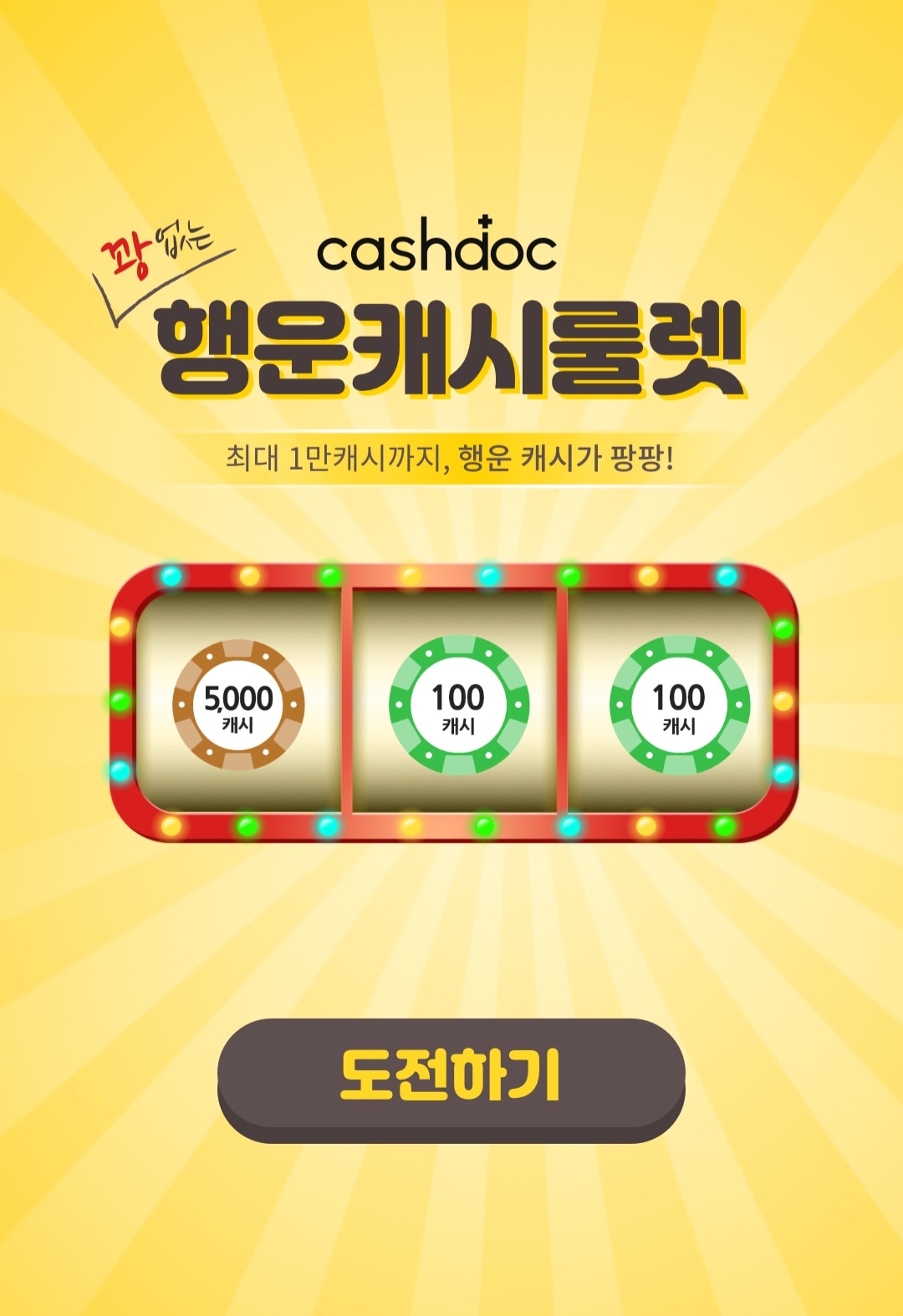 그리고 행운캐시룰렛도 참여하면 1캐시부터 10,000 캐시까지 받을수 있다.