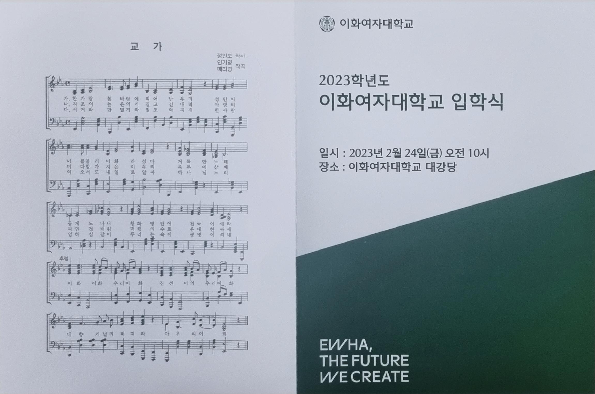 오늘은 2023년 이화여자대학교 입학식을 했다. 4년만에 대면 입학식이라고 한다.