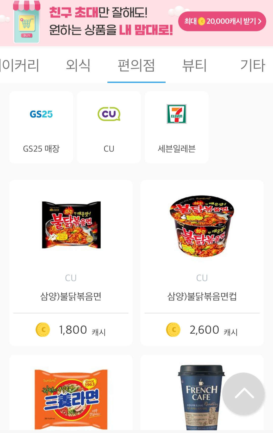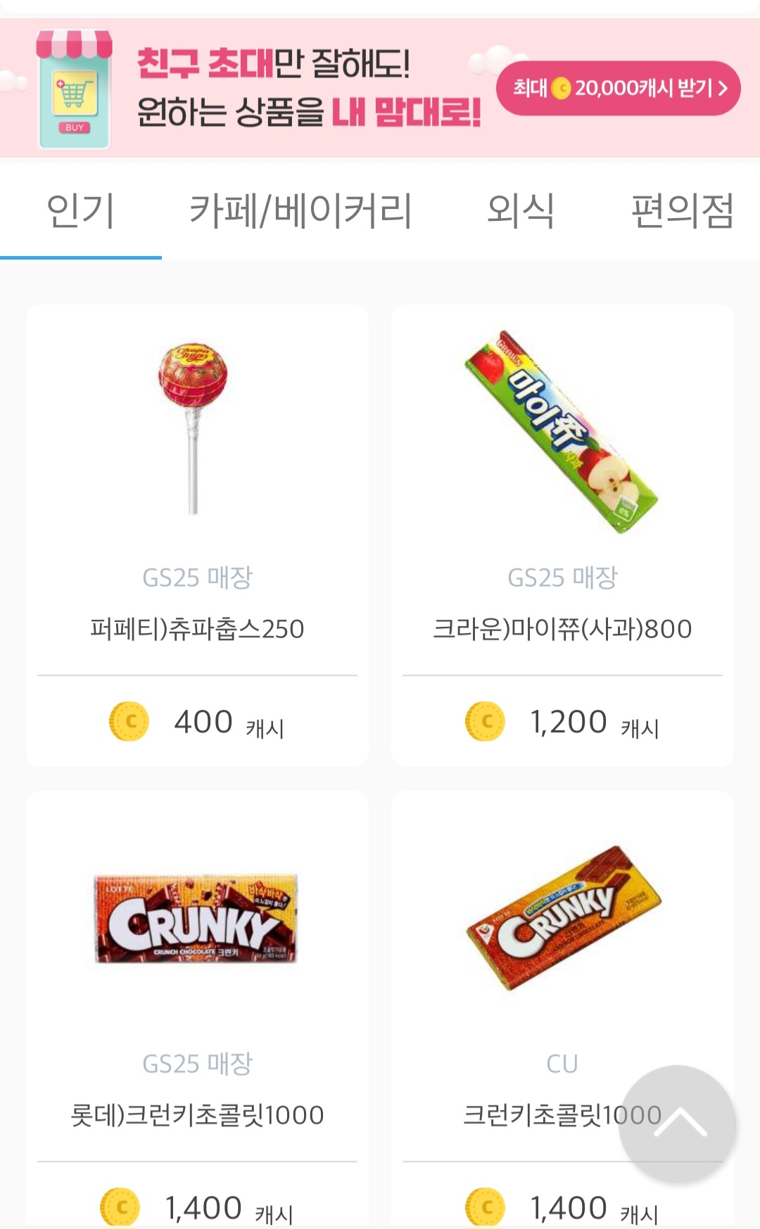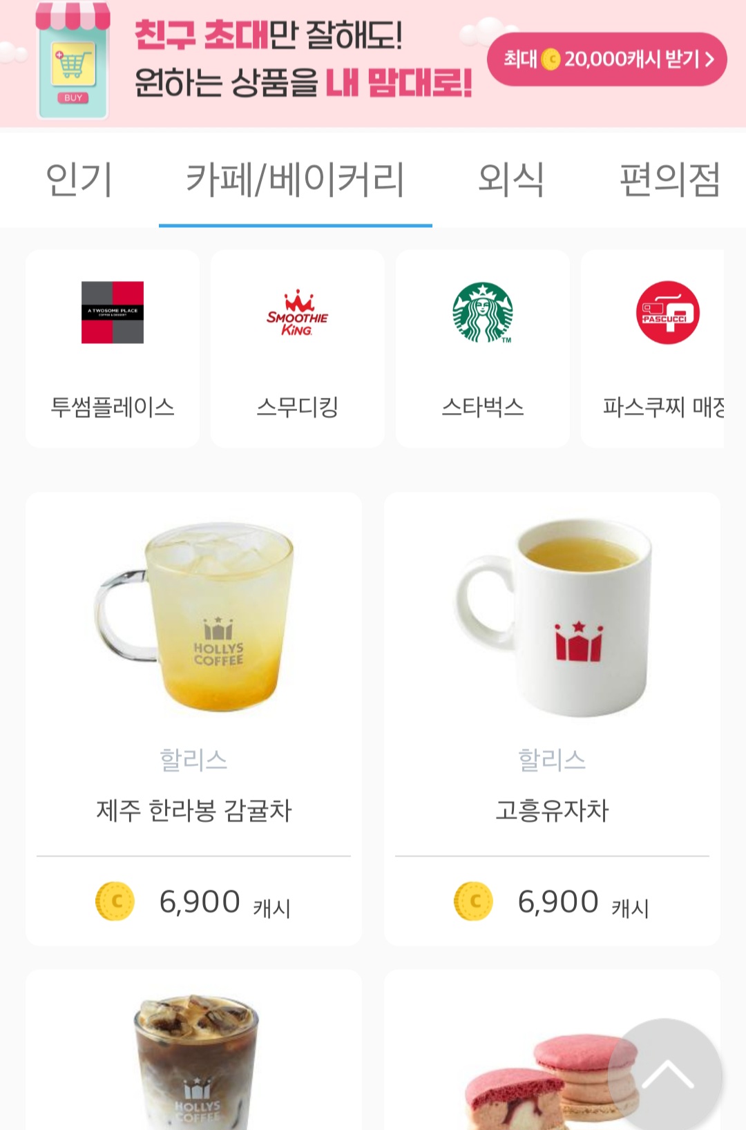 이렇게 쌓인cash로 커피나 여러가지 모바일 상품권으로 바꿀수 있다.