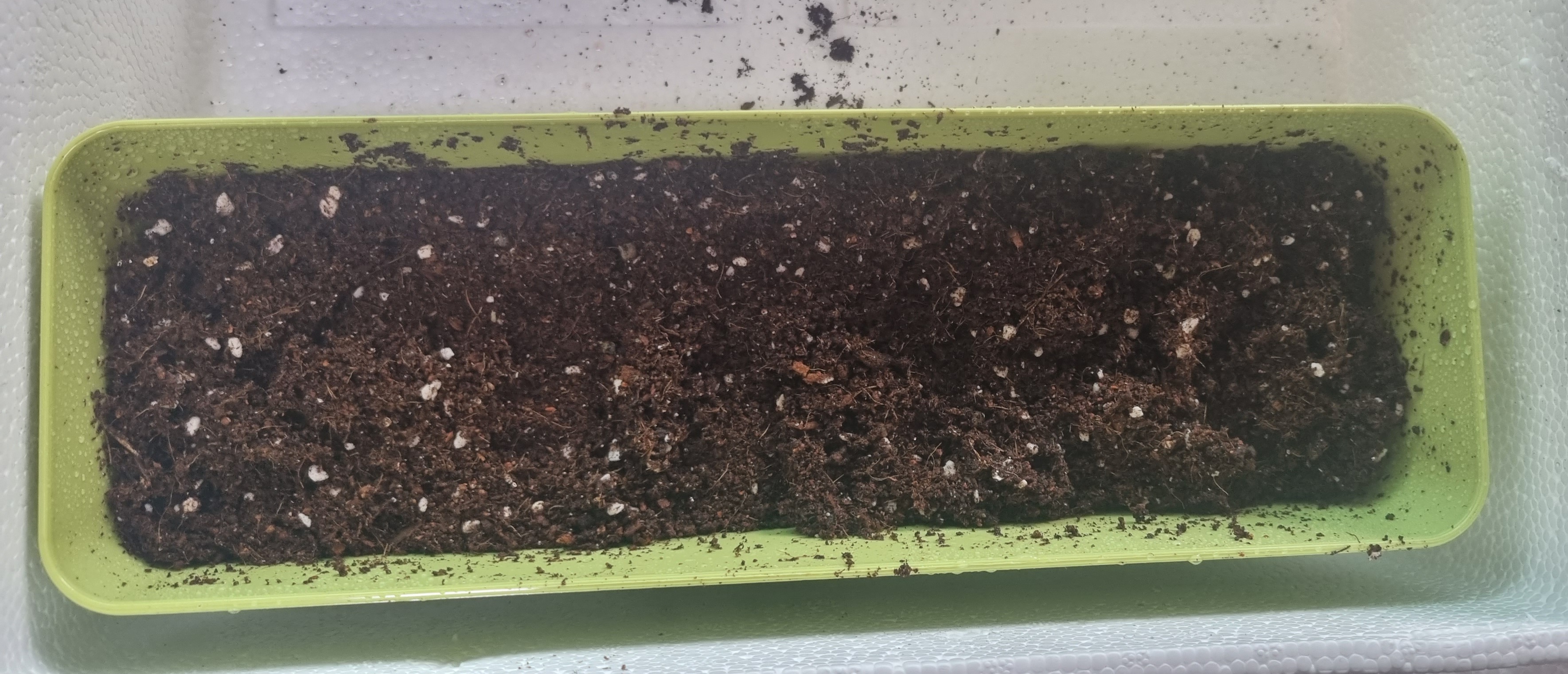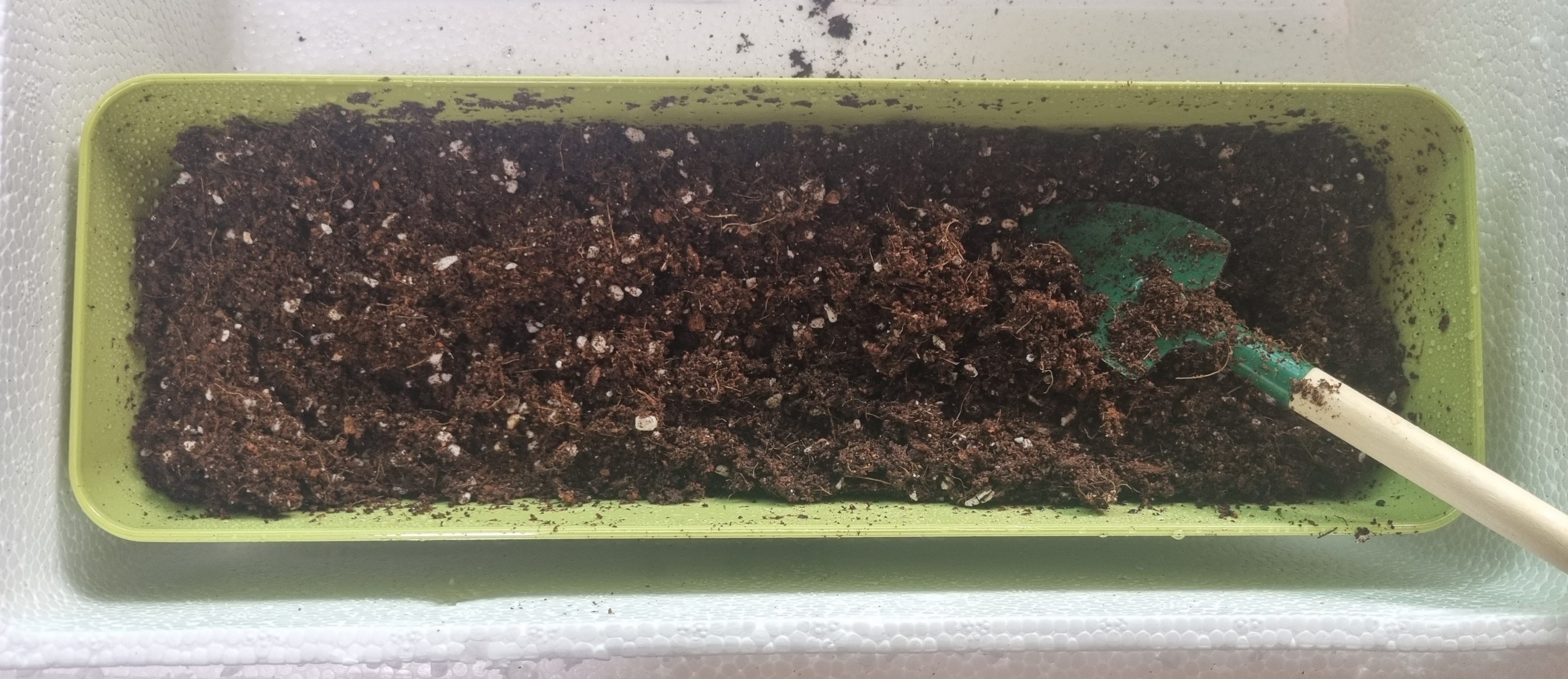 3. 배양토에 물이 충분히 스며들 때까지 기다린후 씨앗을 심을 수 있도록 5~10mm로 깊이로 골을 낸다.