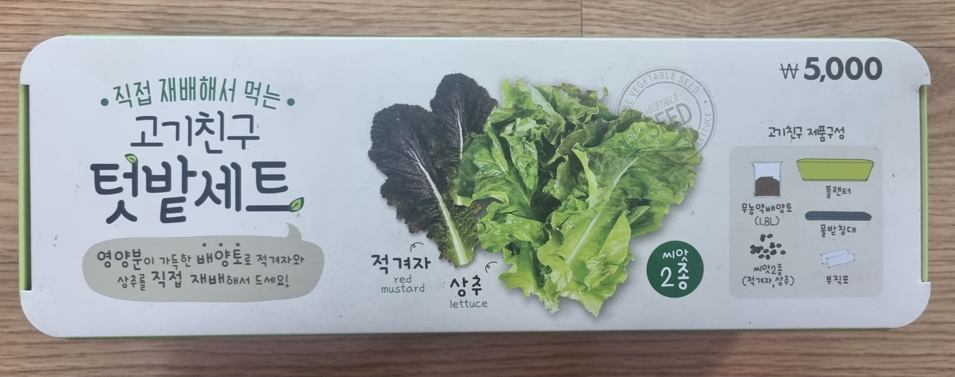 오늘 오랜만에 다이소를 갔는데 우연하게 직접 재배해서 먹는 고기친구 텃밭세트가 눈에 들어왔다.