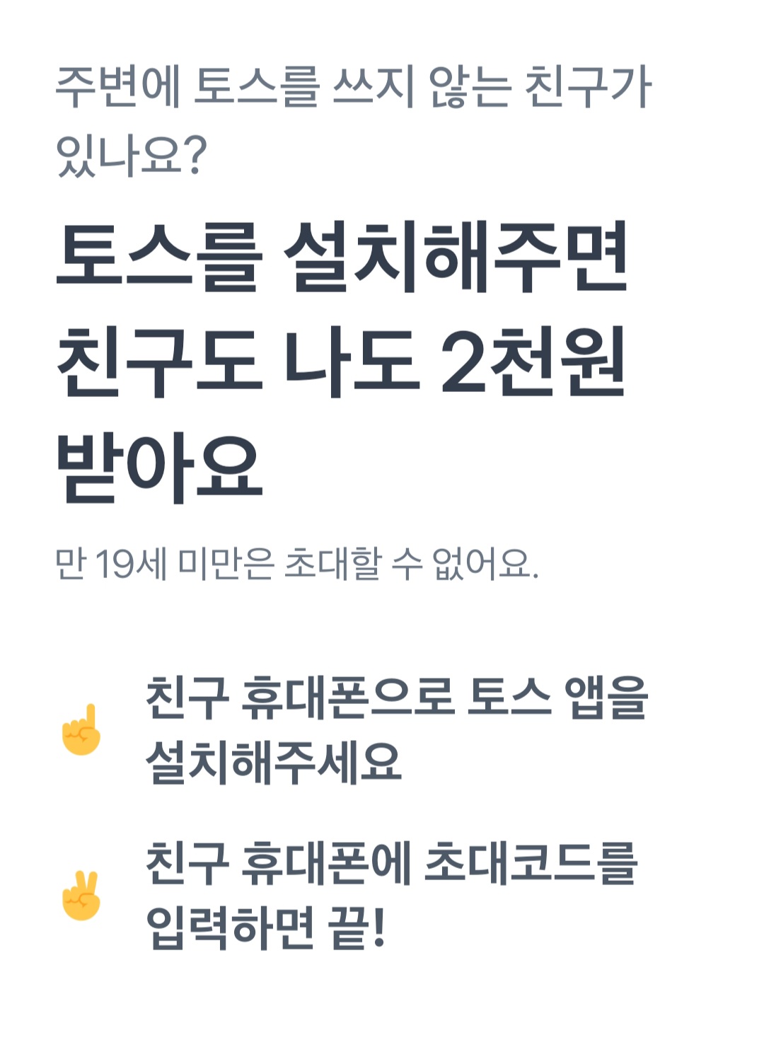 토스도 추천인 초대 코드8685021740 가 있다는걸 이제야 알았네.