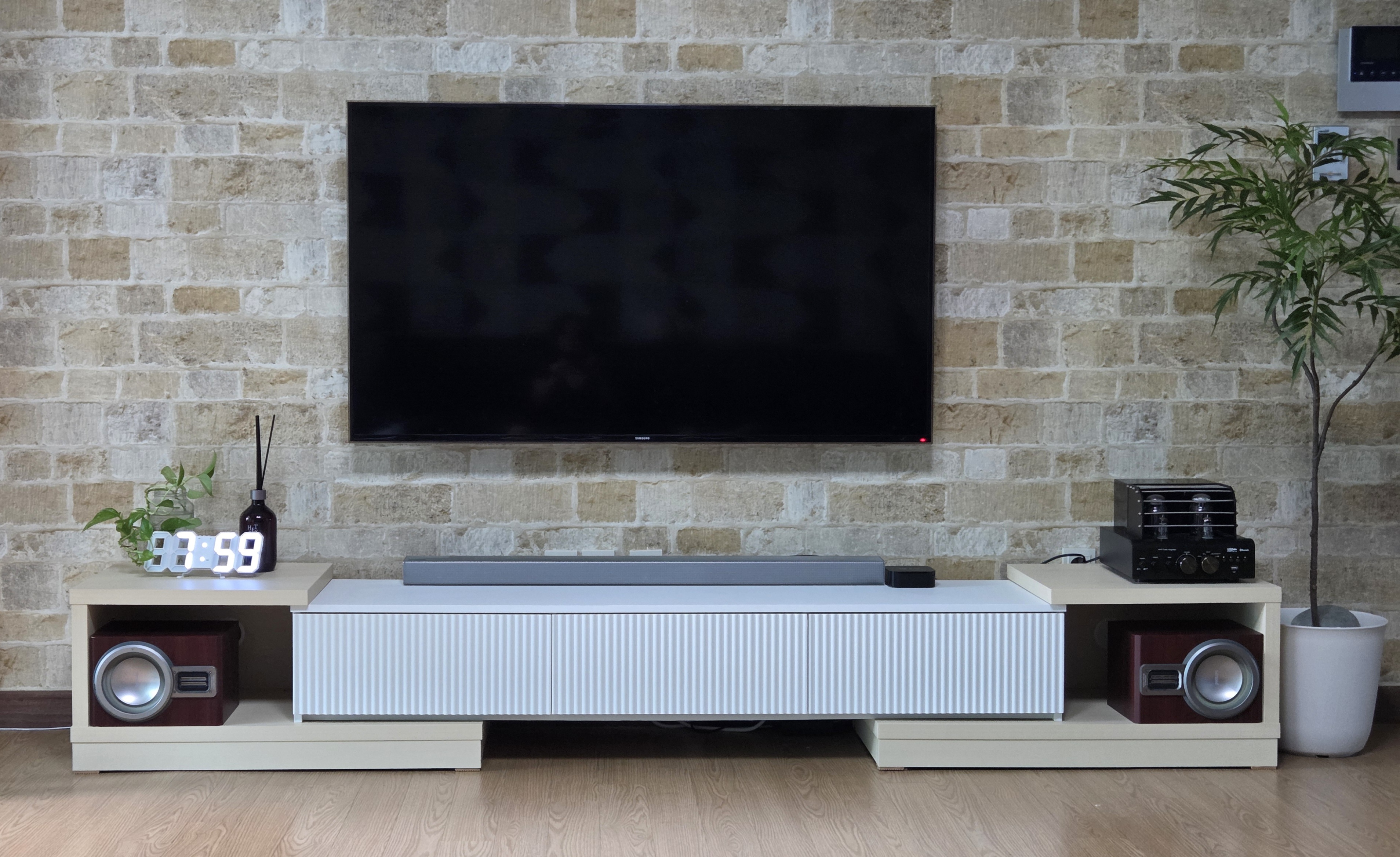 거실장의 크기는 거실 분위기와 수납 능력을 좌우한다. 일반적인 고정형 거실장은 공간에 딱 맞추기 어렵지만, 동서가구 확장형 거실장 2300은 길이를 조절할 수 있어 우리 집 거실 폭에 맞게 세팅 가능하다. 실제 설치 시, 원하는 길이로 조절해 벽면과 TV 위치에 완벽하게 맞췄다. 이러한 점에서 인테리어 완성도가 한층 올라갔다.