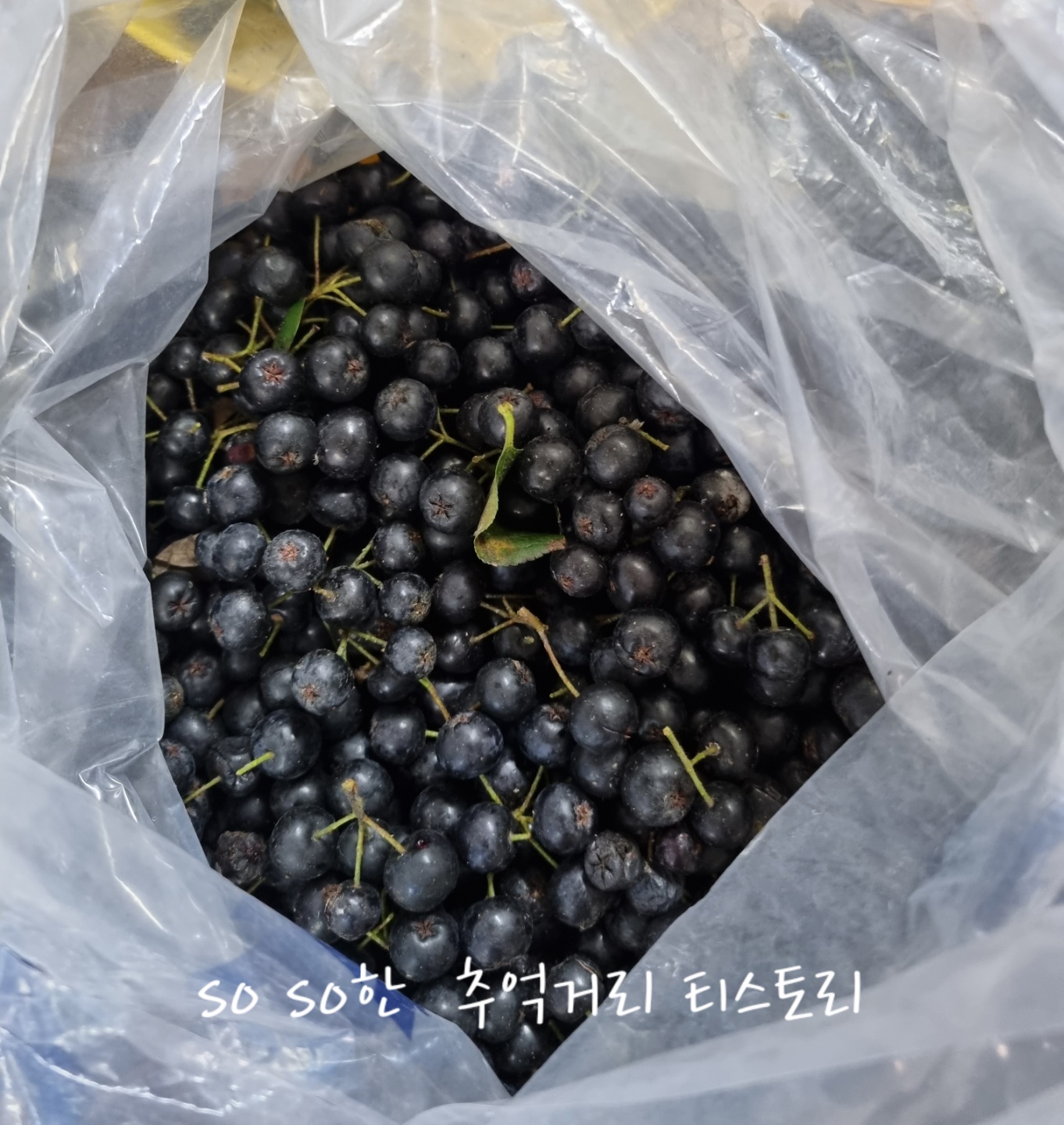 생으로 먹었는데 진짜 떫다. 지인이 주면서 설탕과 1:1 로 아로니아청을 담으라고 하길래 한번 시도해보았다. 먼저 열매를 하나 하나 따는게 보통 일이 아니다. 양이 꽤 됐다.