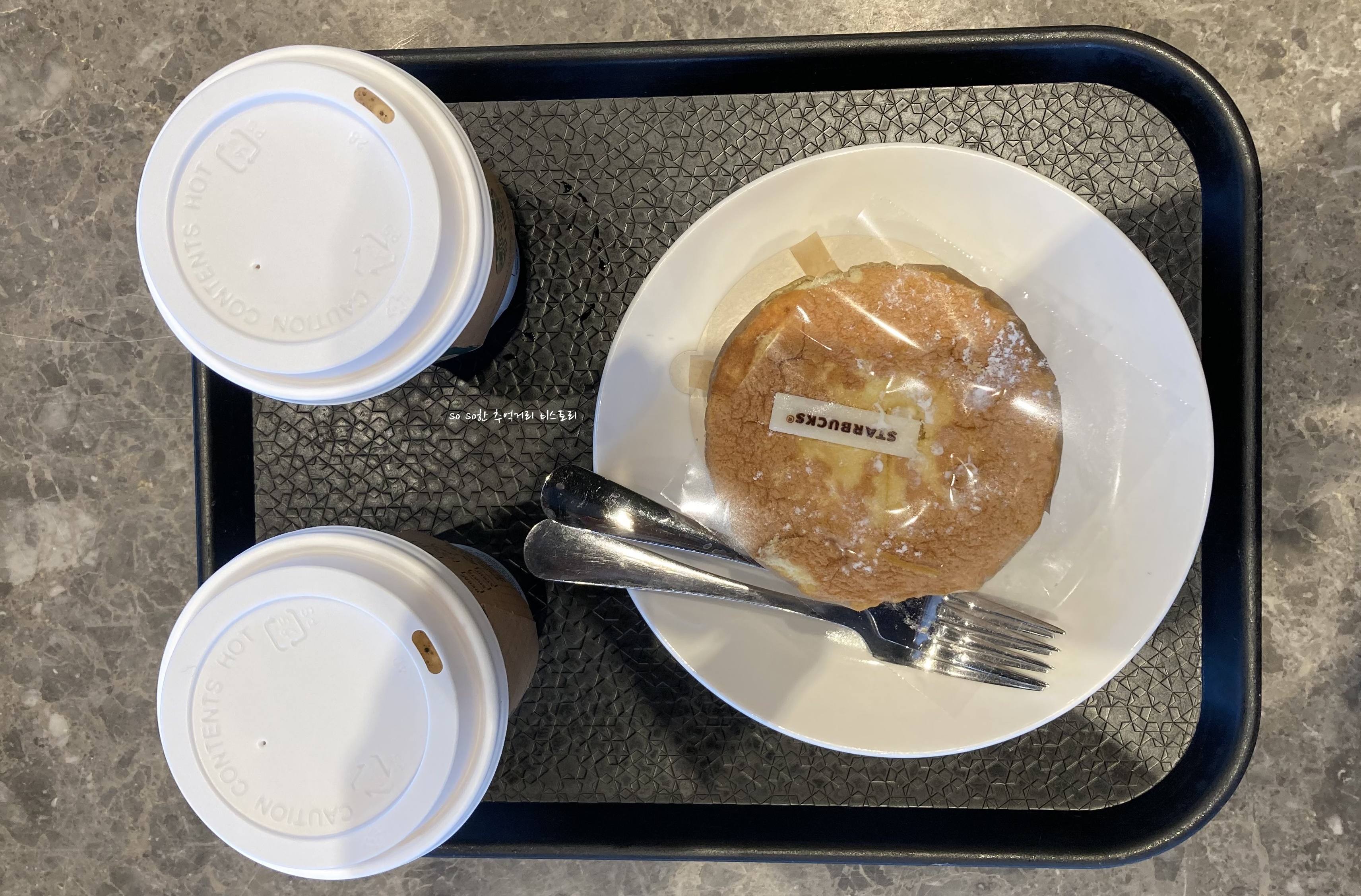 신랑이 받은 쿠폰은 아메리카노 2잔과 부드러운 생크림 카스텔라 세트였다. 날씨가 벌써 선선해서 따뜻한 커피로 바꾸었다.