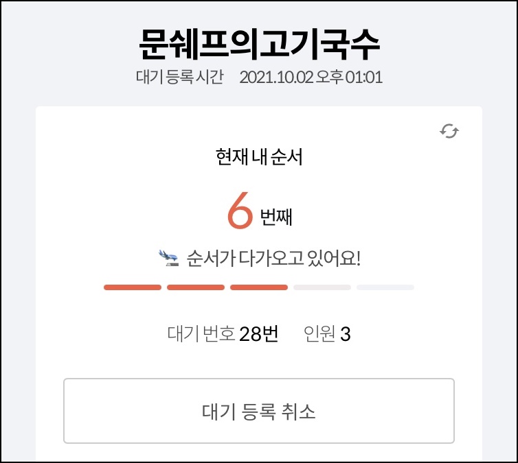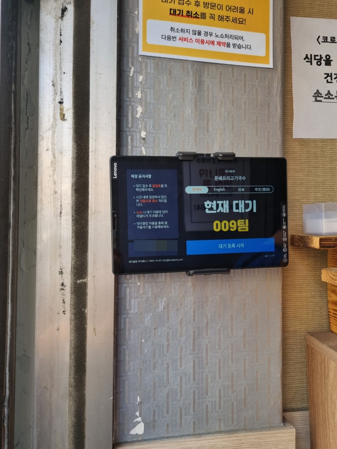 먼저 도착하면 입구에 대기등록을 하는 것이 있다. 그럼 카톡으로 문자가 온다. 이건 손님이 없을때 찍어 놓은 사진이다.