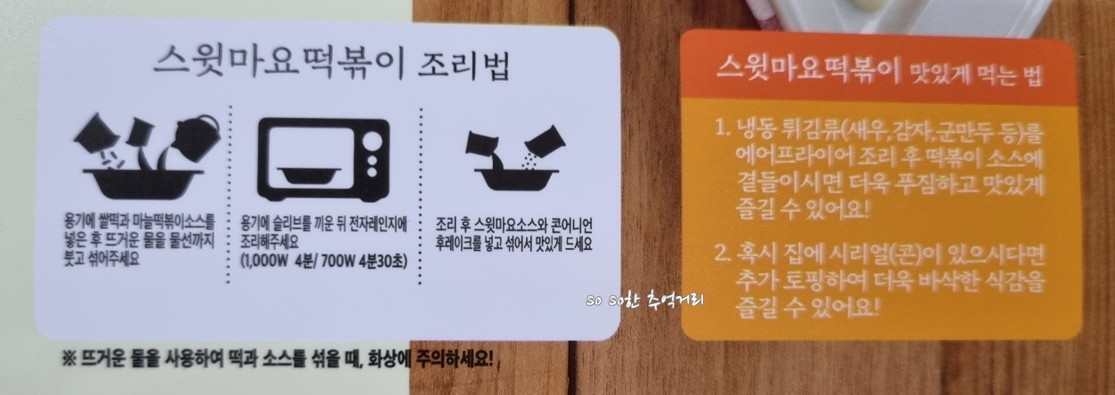 편스토랑 류수영 스윗마요 떡볶이 조리법은 슬리브 옆면에 잘 나와 있다.