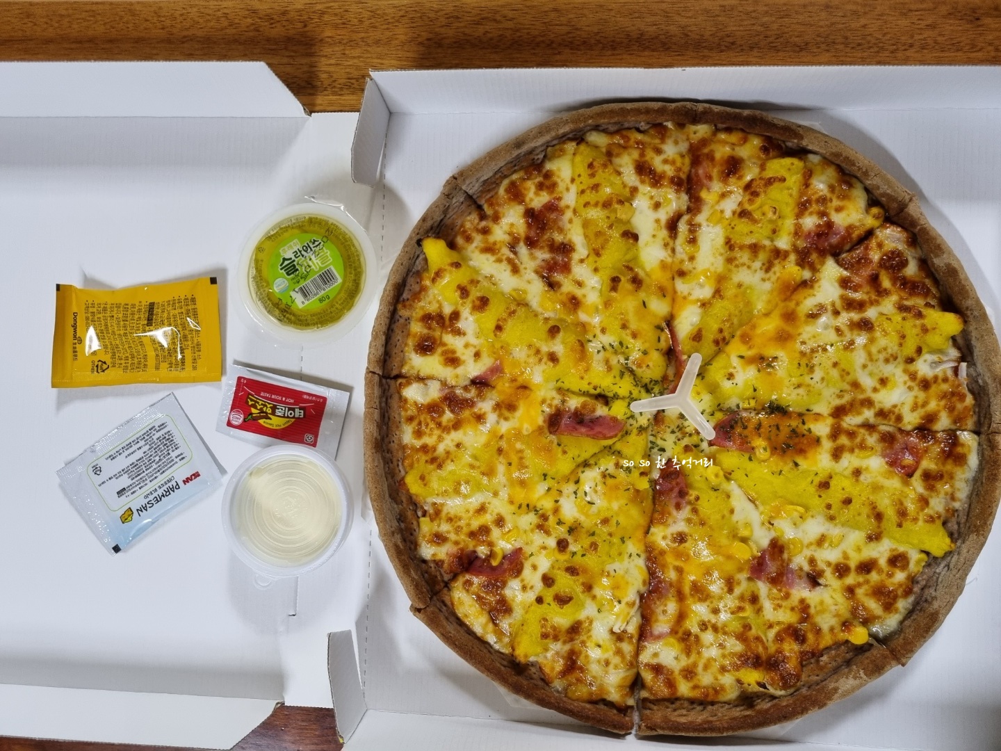 이건 저번에 먹었던 불고기 피자 뒷면이다. 고구마 피자는 찍어놓은게 없당 ㅠ ㅠ