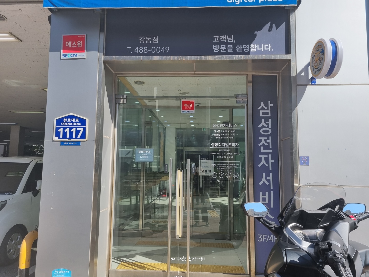 버스를 이용해서 길동근처, 강동성심병원 근처에 있는 삼성전자서비스 강동센타를 방문했다. 이곳은 삼성디지털프라자 강동점이 있는 곳이다. 1층은 주차장이고 2층은 삼성디지털프라자 이다. 3.4층은 삼성전자서비스센타다. 1층 주차장은 넓은편이다. 안내하시는 분들이 계셔서 주차는 편한것 같다.